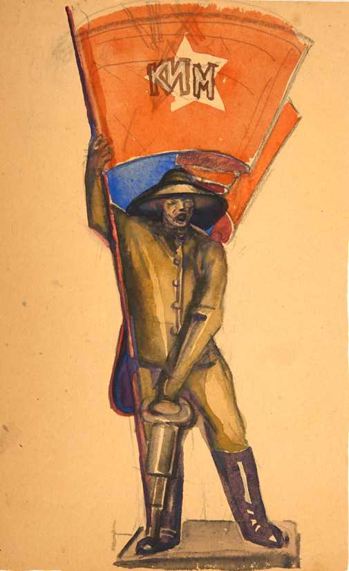 Конкурсный эскиз плаката Коммунистического Интернационала Молодежи. Бумага, гуашь, 29,5×18,5 см.