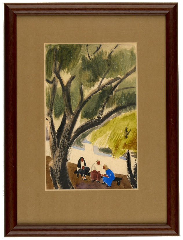 Самарканд. Задушевная беседа. 1930-е гг. Ватман, кисть, акварель, гуашь, 16×10 см (в свету).