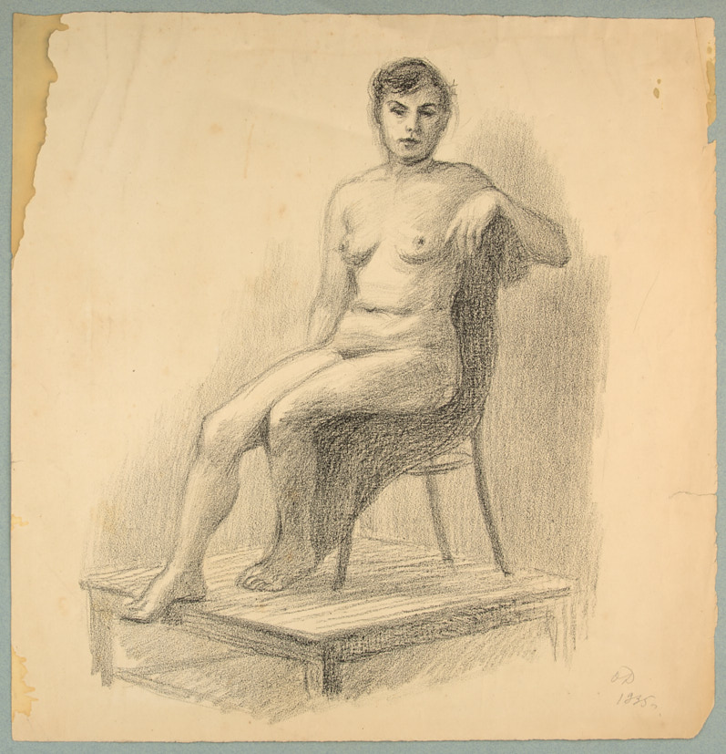 Натурщица на подиуме. 1935 г. Бумага, цанговый карандаш, 36,7×36 см.