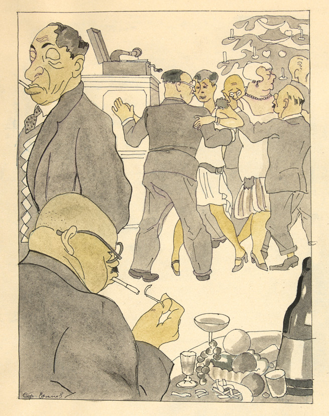 У новогодней елки. 1950-е гг. Бумага, тушь, перо, размывка, 25×18,5 (в свету), Л: 42×30 см.