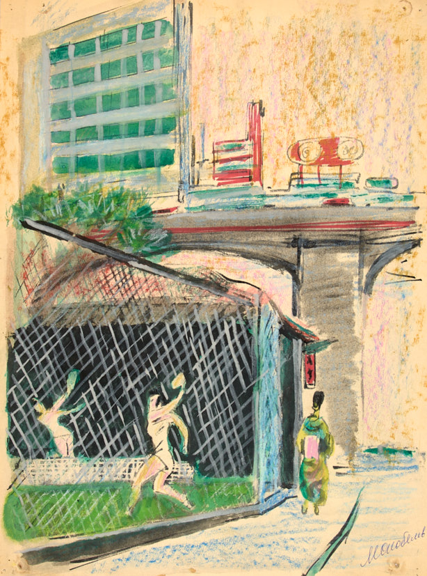 Японская улочка. 1970-е гг. Бумага, гуашь, 43,×32 см.