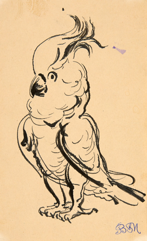 Попугай. Иллюстрация к книге «Путешествия Миклухо-Маклая». 1960-е гг. Бумага, тушь, кисть, перо, 19,5×12 см.