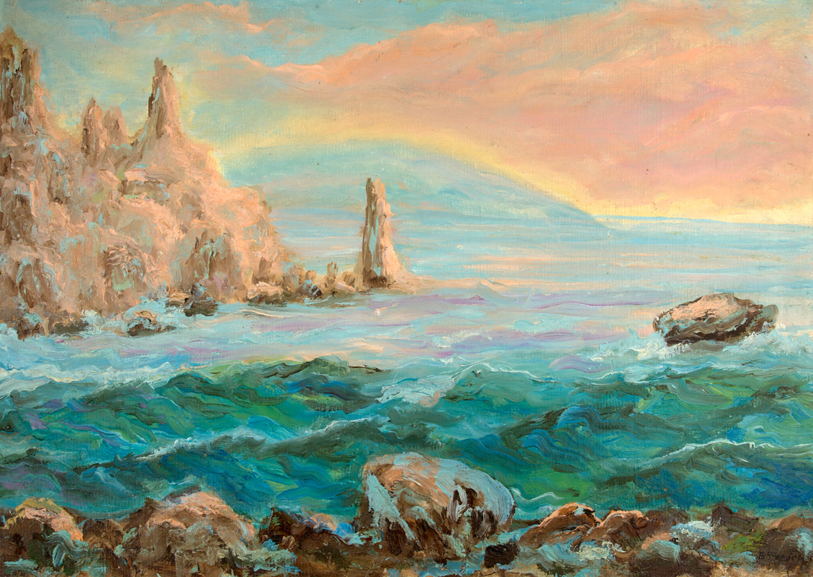 Крым. Скалы. 1959 г. Холст на картоне, масло, 49×70 см.