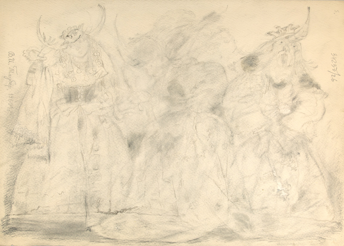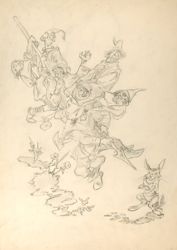 Оригинал иллюстрации к сказке братьев Гримм «Белоснежка и семь гномов». 1960-е гг. Бумага, карандаш, 50×35,6 см.