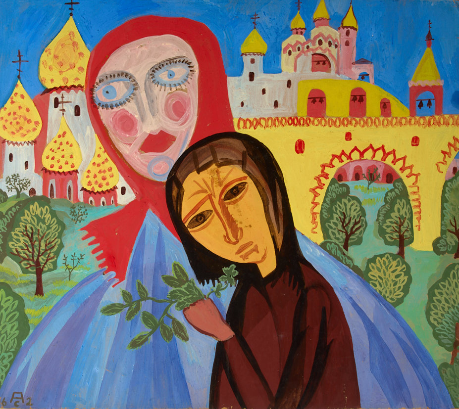 Ушедшая Русь. 1962 г. Картон, темпера, 43×50 см.