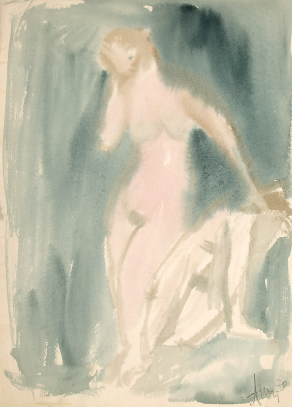 Модель с маской. 1970-е гг. Бумага, акварель, 42,5×29,5 см.