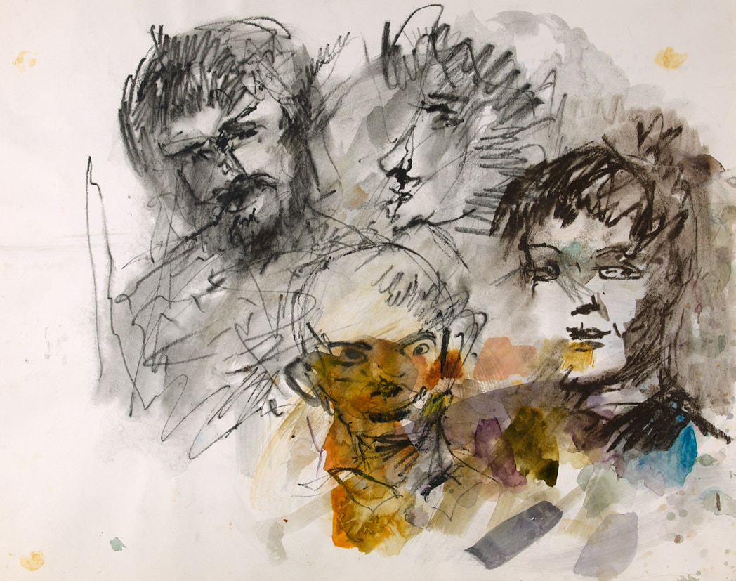 Художники. А. Зверев, А. Тимаков, В. Казарин и А. Соколов. 1980-е гг. Акварель, кисть, 39,6×49,5 см.