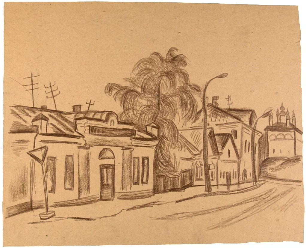 Старинная улица. 1960-е гг. Крафтовая бумага, сангина, 36×44,5 см.