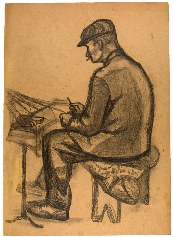 За плетением сетей. 1960-е гг. Крафтовая бумага, уголь, 58,7×42 см.