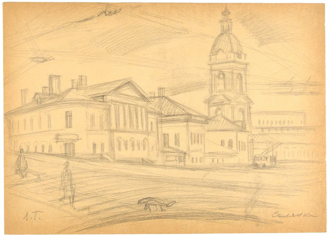 Москва. Улица Солянка. 1961 г. Бумага, карандаш, 29,5×40 см.