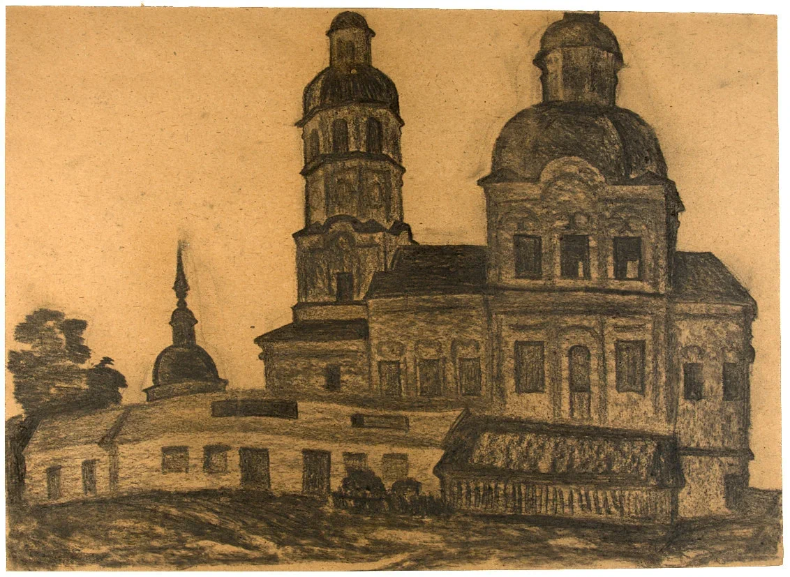Северное барокко. 1960-е гг. Крафтовая бумага, уголь, 42×58,5 см.