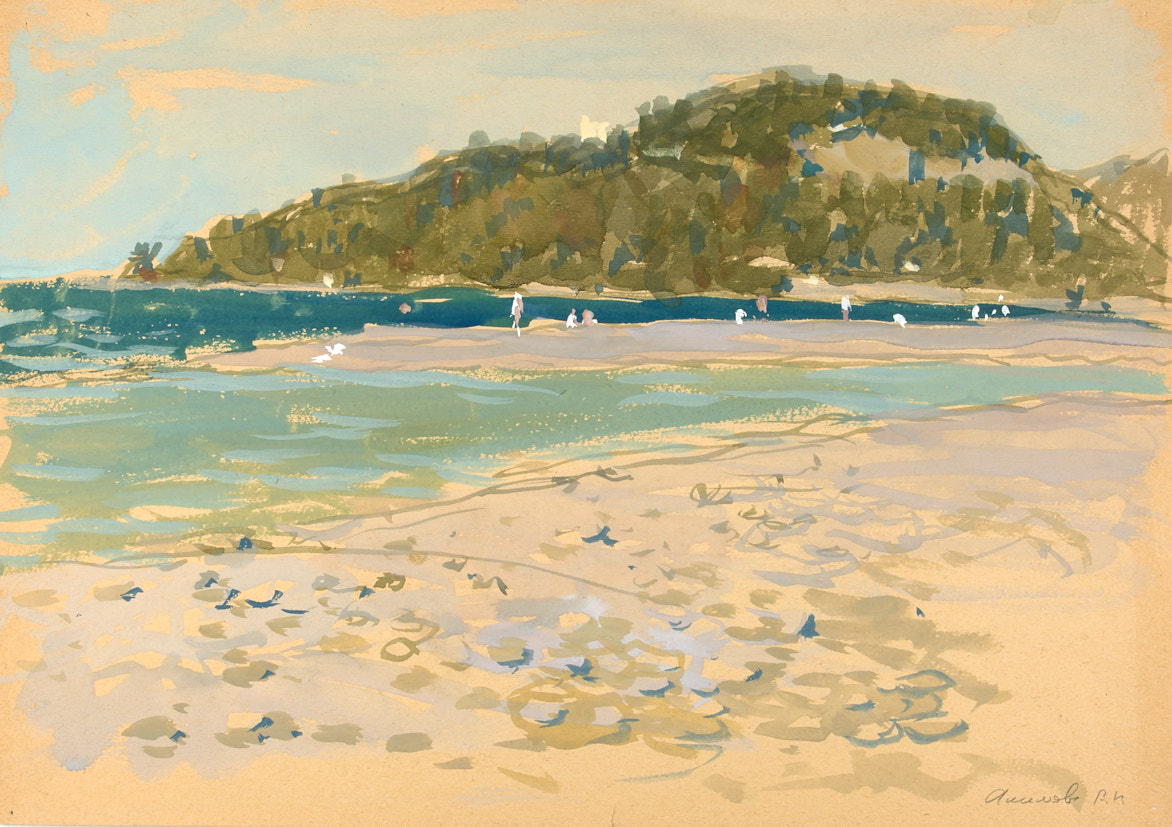 У Медведь-горы. 1950-е гг. Карандаш, акварель, гуашь, 30×42,3 см.