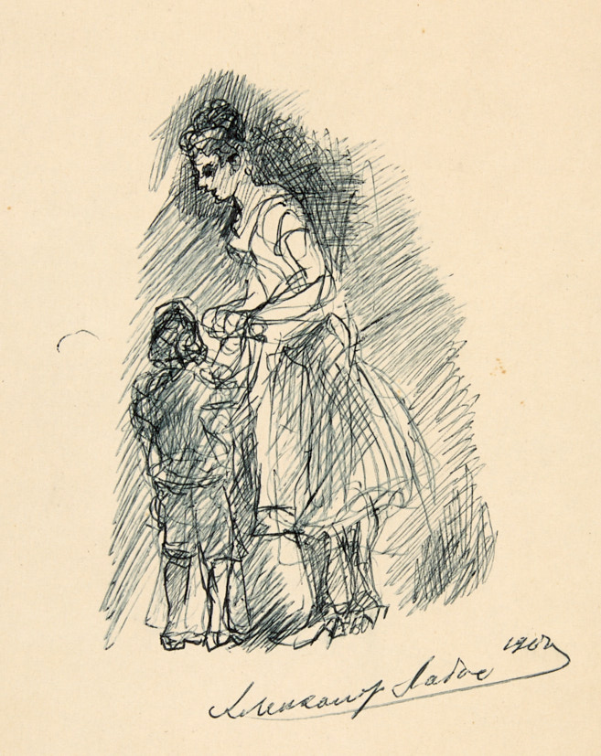 Мать и дитя. 1963 г. Бумага тушь, перо, 20,8×14,8 см.