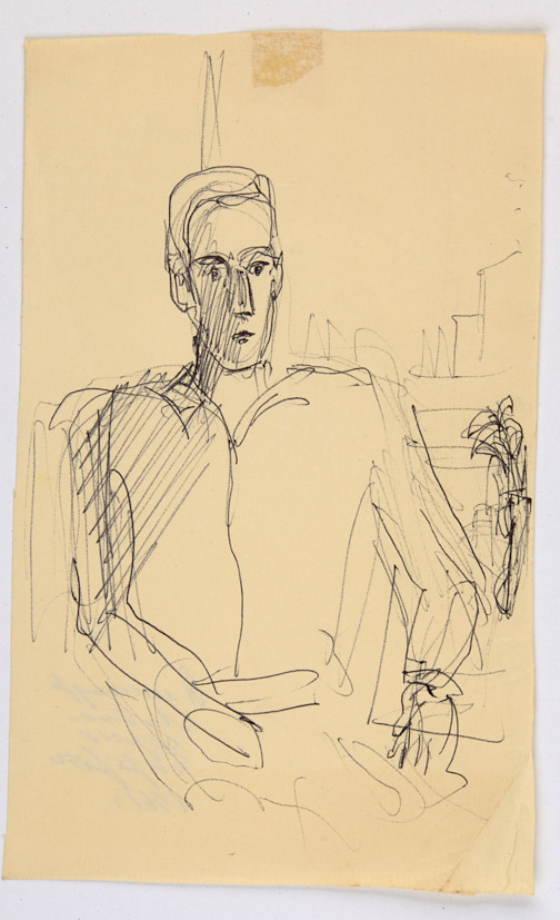 Мужчина у окна. 1961 г. Бумага, шариковая ручка, 20×12,2 см.