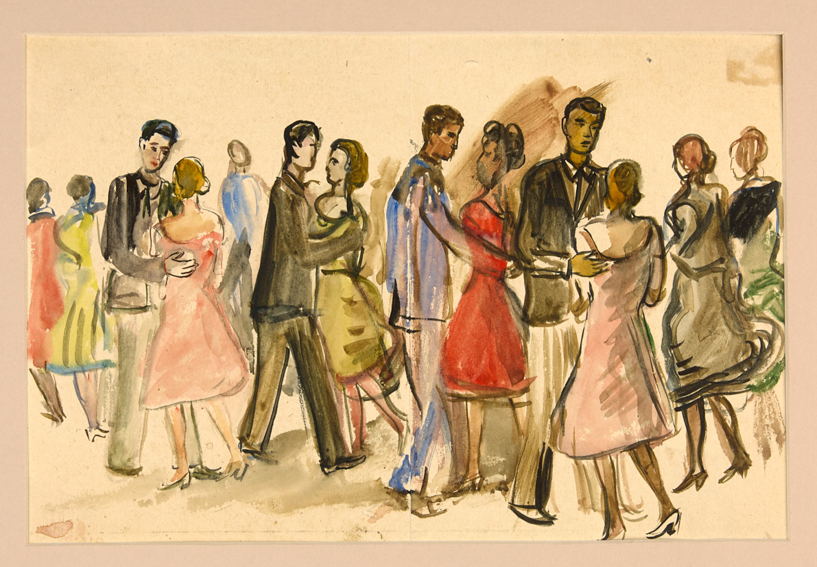 Танцы. 1950-е гг. Бумага, акварель, кисть, 19,2×27 см.
