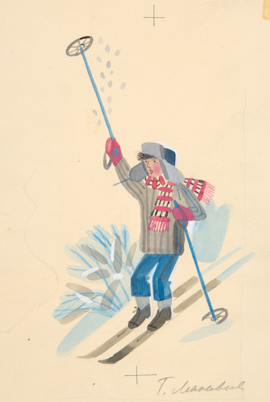 Маковеева Галина Александровна (р. 1936). Лыжник. 1970-е гг. Гуашь, тушь, 27×17 см.