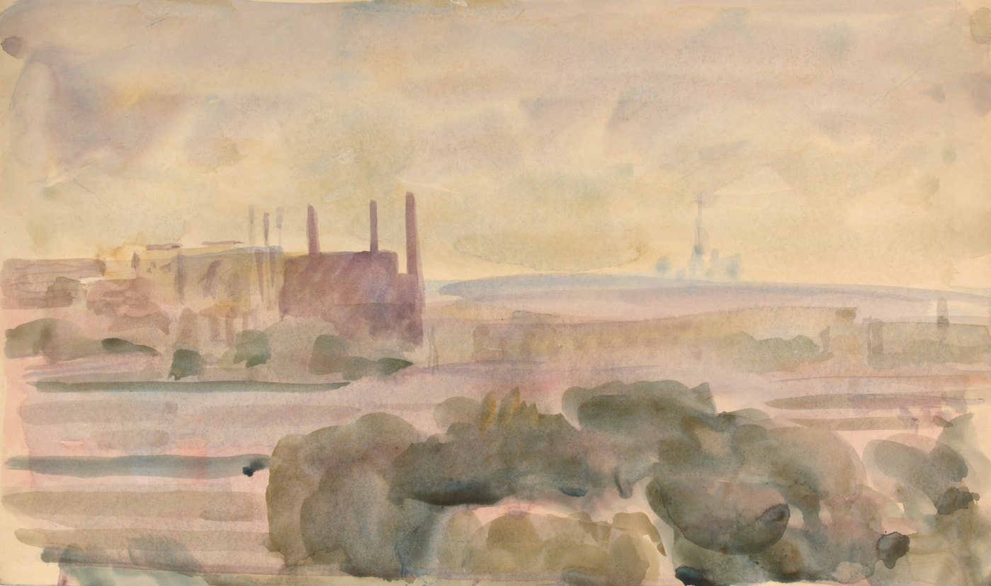 Летняя Москва. 1970-е гг. Картон, акварель, кисть, 36,5×61 см.