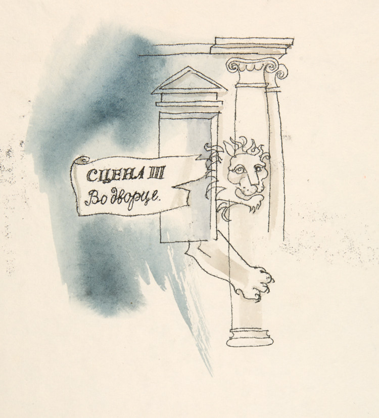 Иллюстрация к «Маленьким трагедиям» А. С. Пушкина. 1970-е гг. Тушь, перо, акварель, размывка, 29,9×20,5 см.