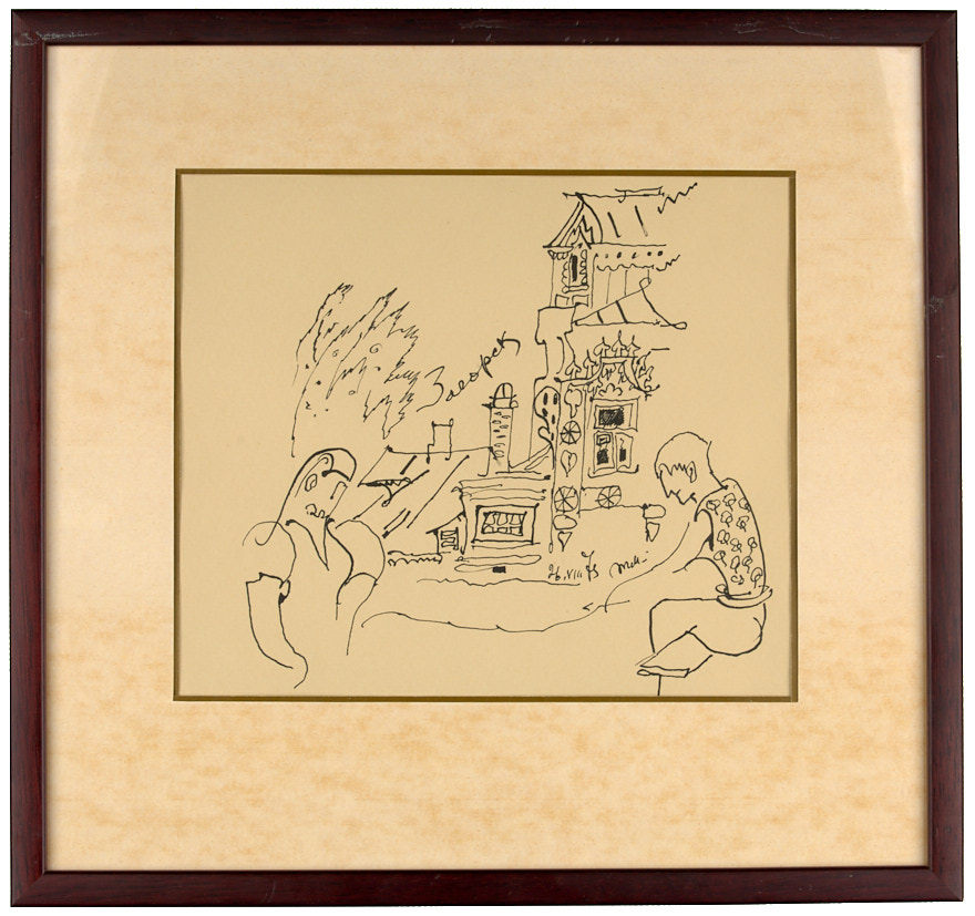 Оформлено в раму. В центре изображения авторская монограмма, дата и название тушью.
