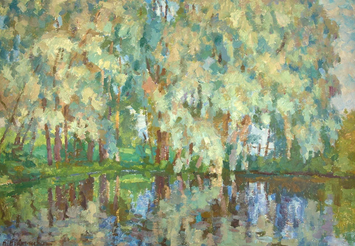 Деревья у пруда. Конец 1950 – 1960 гг. Картон, масло, 49,7×69,8 см.