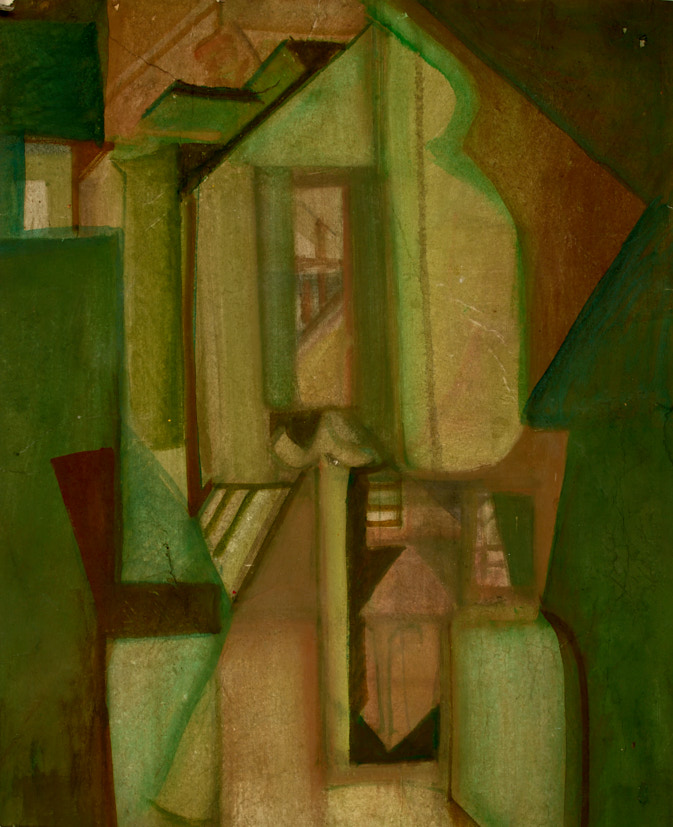 Архитектоника I. Зеленое и песочное. Середина 1980-х гг. Бумага на ватмане, пастель, гуашь, 74×61 см.