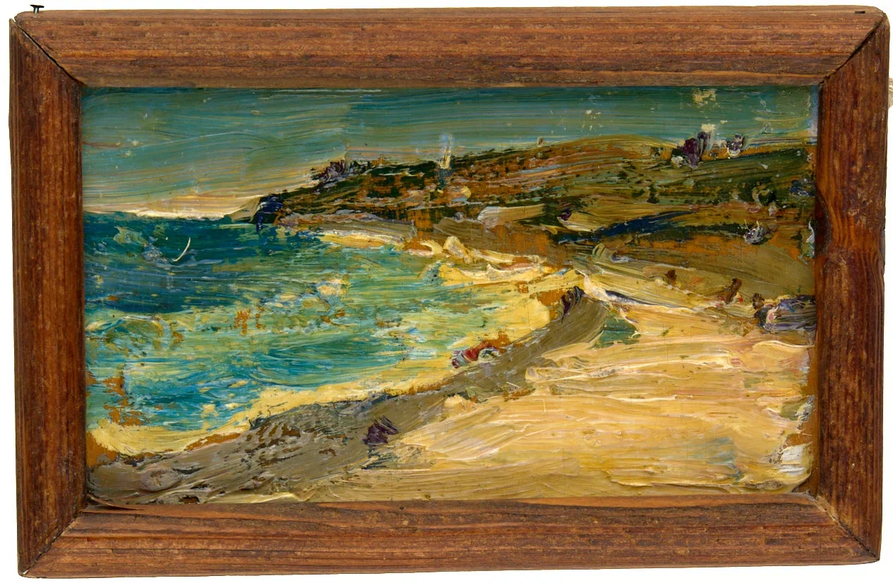 Малютин Сергей Васильевич (1859-1937). Берег моря. 1925 г. Фанера, масло, 8,5*15,5 см. На обороте авторская подпись и дата пером: С. Малютин 25.