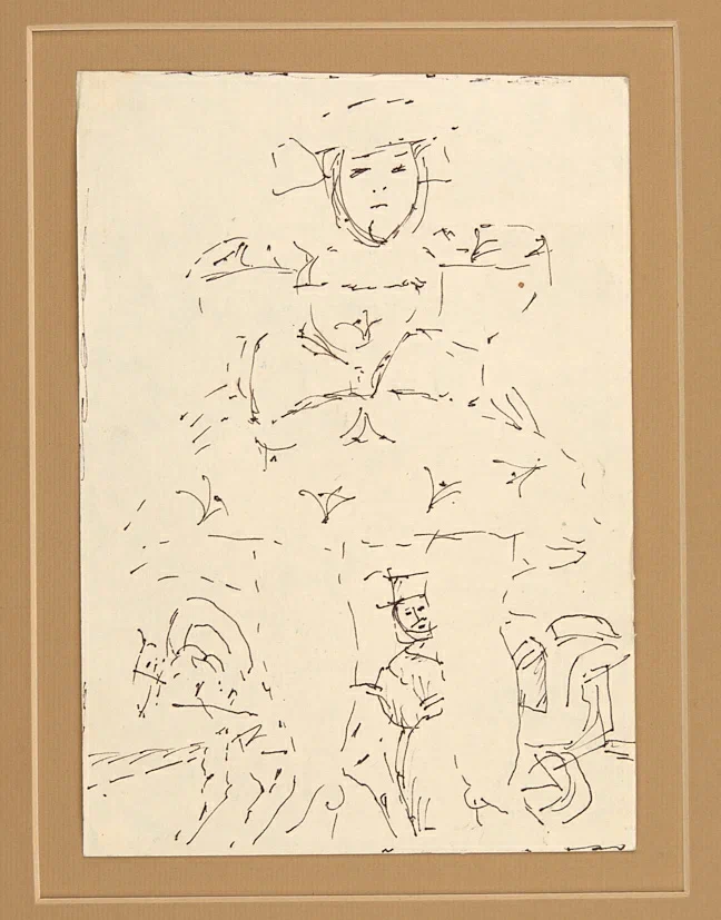Композиция с ямщиком. 1990-е гг. Бумага, тушь, перо, 18,5×13 см.