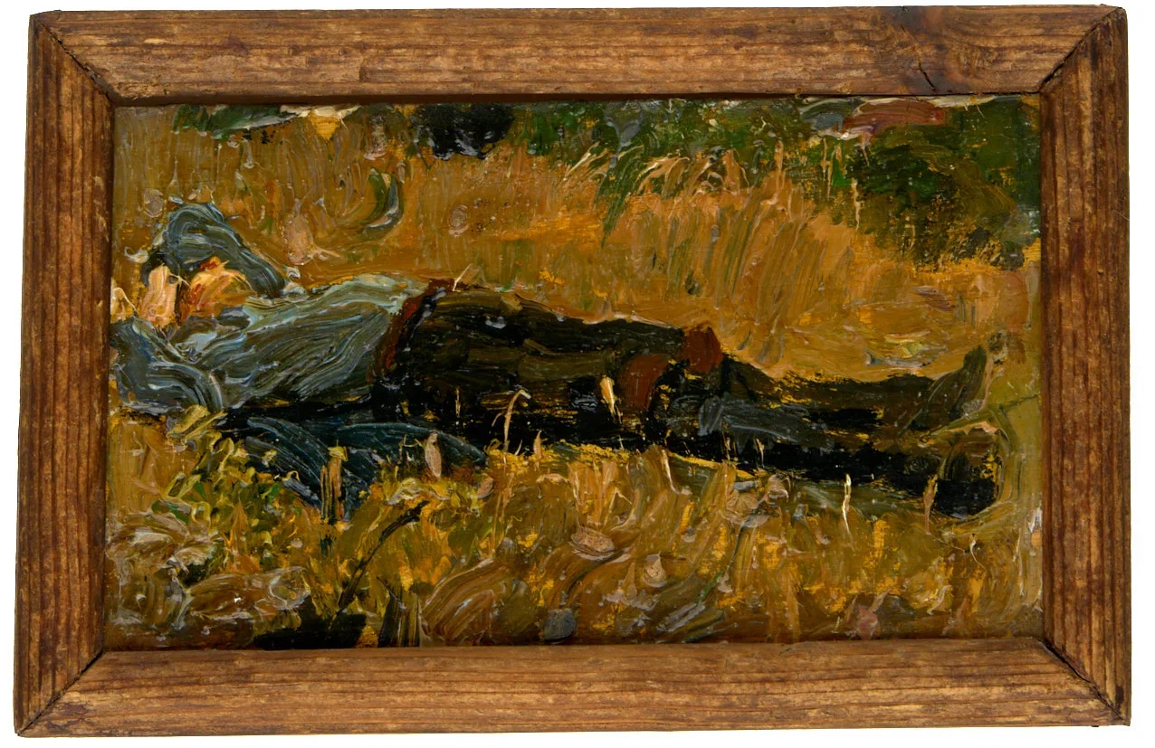 Малютин Сергей Васильевич (1859-1937). Отдых в траве. 1924 г. Фанера, масло, 9*15,5 см. На обороте авторская монограмма и дата карандашом: СМ 24.