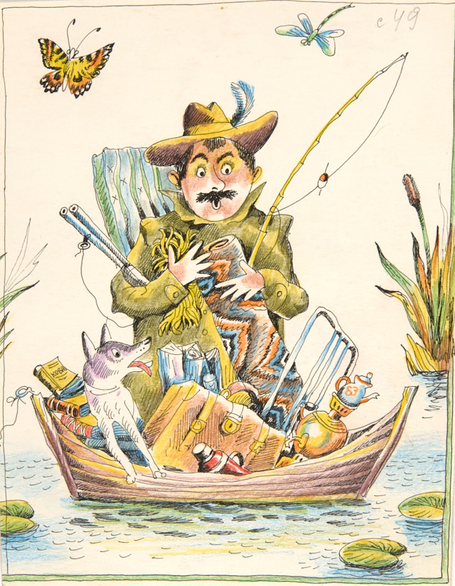 Лот из 2 книжных иллюстраций. 1. Рыбачек. Бумага, тушь, перо, акварель, 23×17,5 см.