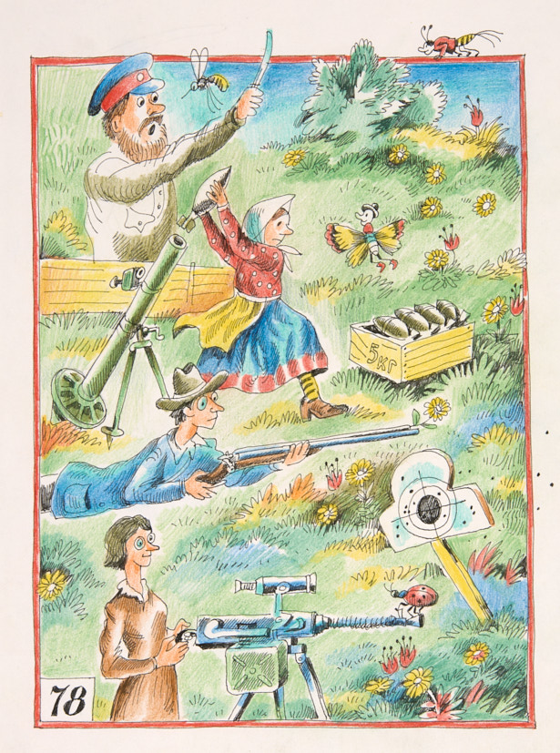 2. Оборона. Бумага, тушь, перо, акварель, 29×21 см.