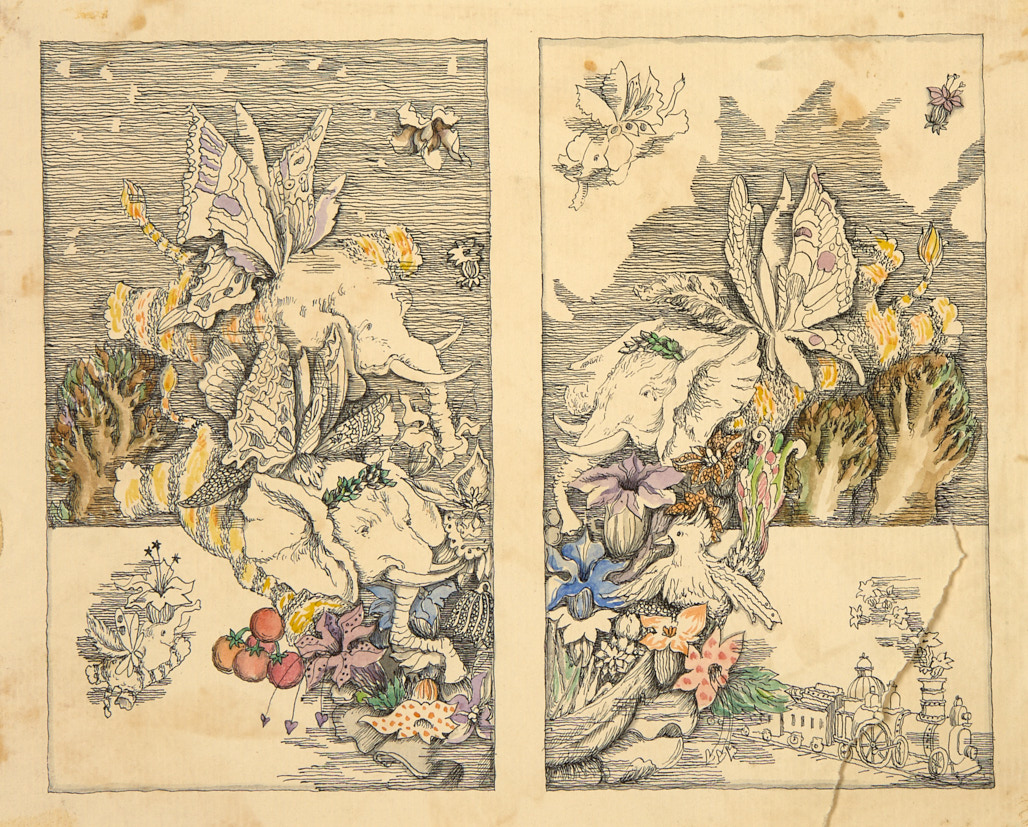 Лот из 4 иллюстраций к сказке Л. Кэрролла «Приключения Алисы в Стране чудес» и «Алиса в Зазеркалье». 1980-е гг. Тушь, перо, акварель, 25,8×18,3; 20×13; 21,5×25,5 см.