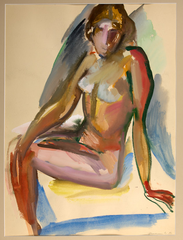 Модель. Игра света. 1991 г. Акварельная бумага, кисть, гуашь, 48,2×36 см.