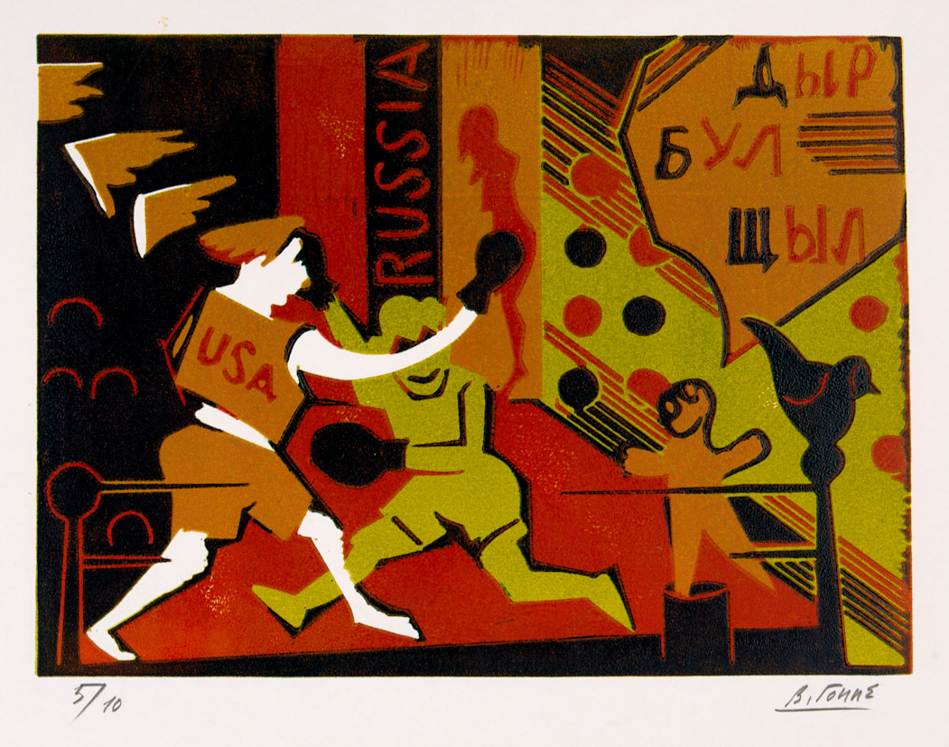 Лот из 11 линогравюр переосмысленных плакатов. 2020-е гг. Линогравюры, 20×29 см.