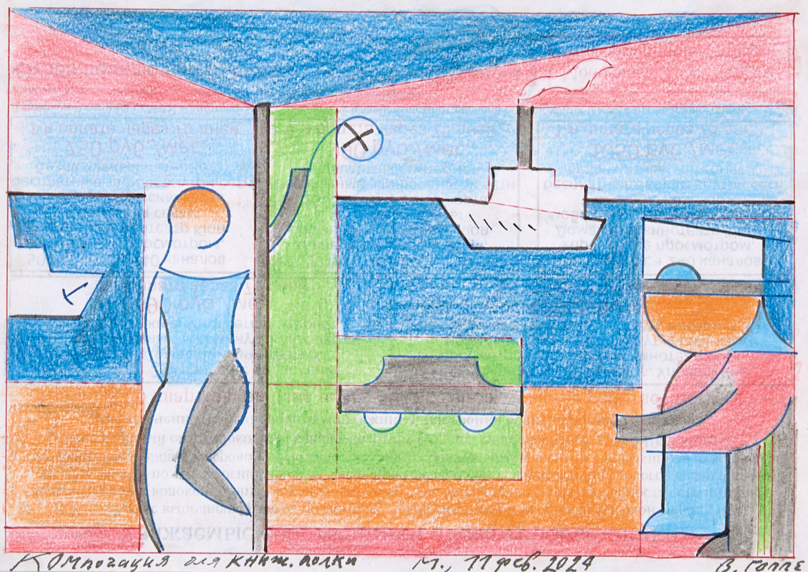 Лот из 18 рисунков, аппликаций, типографских отпечатков с фигурами и комментариями автора. 2020-е гг. Бумага, карандаш, полиграфия, 15×21, 22×31 см.