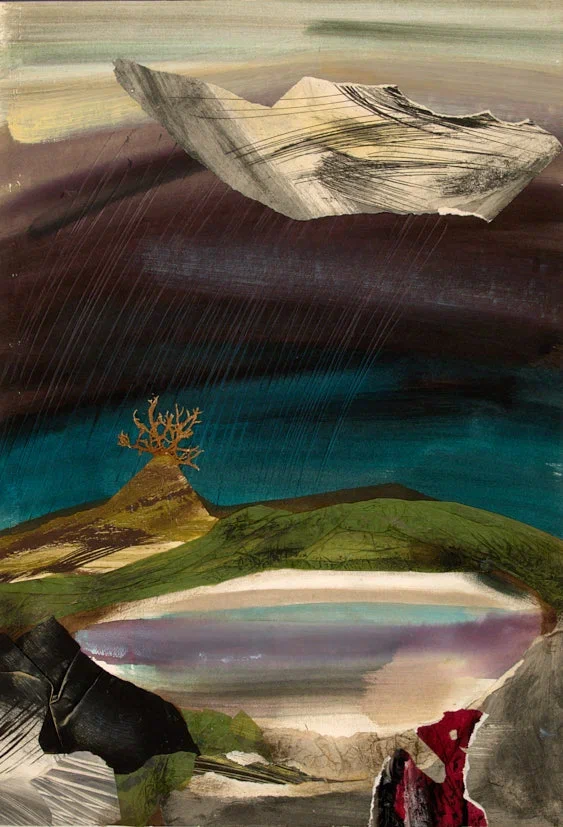 Забытый берег. Из серии «Славянская мифология». 1970-е гг. Ватман, акварель, коллаж, 54,5×37,5 см.