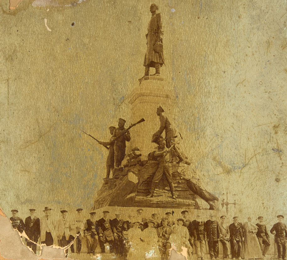Торжества у памятника генералу Тотлебену в Севастополе в память 55-летия Крымской кампании. 1910 г. Фотография, 17×18,5 см.