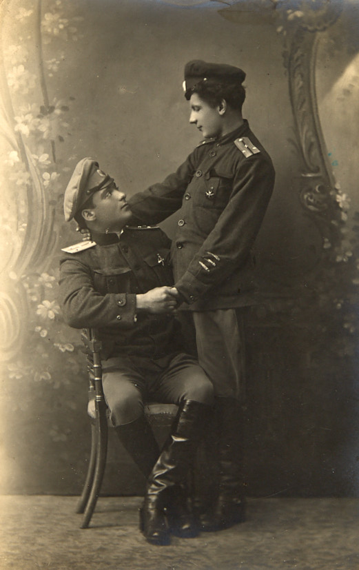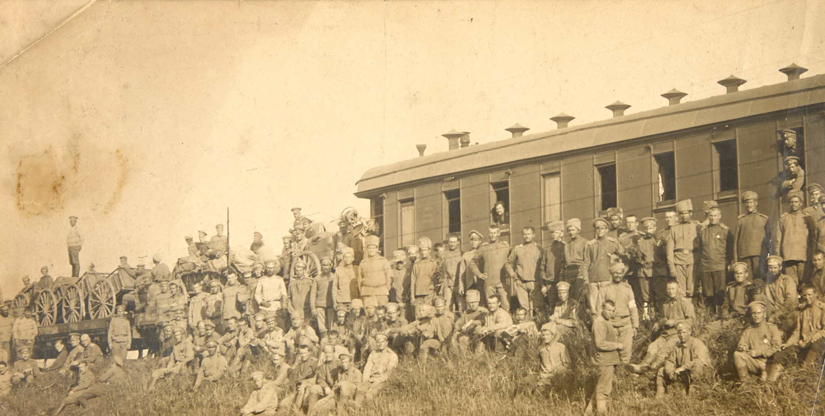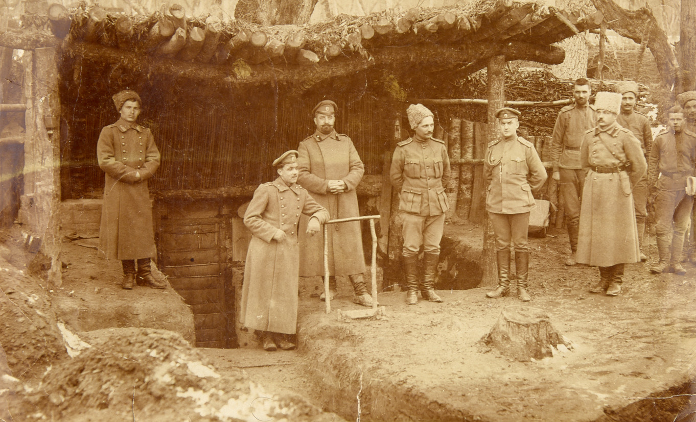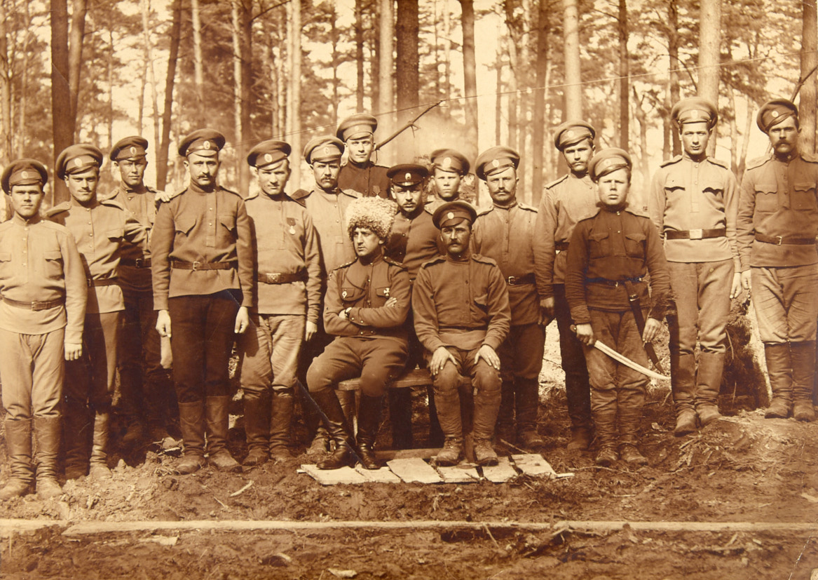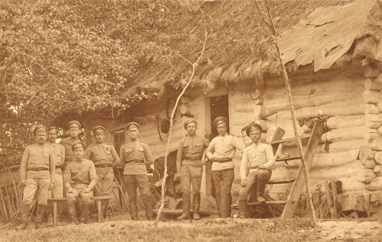 На фотографиях запечатлены военные РИА - 78-го пехотного Навагинского генерала Котляревского полка на месте временной дислокации. На одном из снимков офицеры сфотографированы у поезда. В подборке имеется фотография прапорщика с ополченским крестом Николая II, а также кавалер ордена Св. Георгия 4-й степени. На некоторых снимках запечатлен подполковник Александр Константинович Кундухов (26.01.1871 - ?), кавалер ордена Св. Станислава 3-й ст. с мечами и бантом и ордена Св. Анны 3-й ст. с мечами и бантом. Закончил войну в звании полковника.