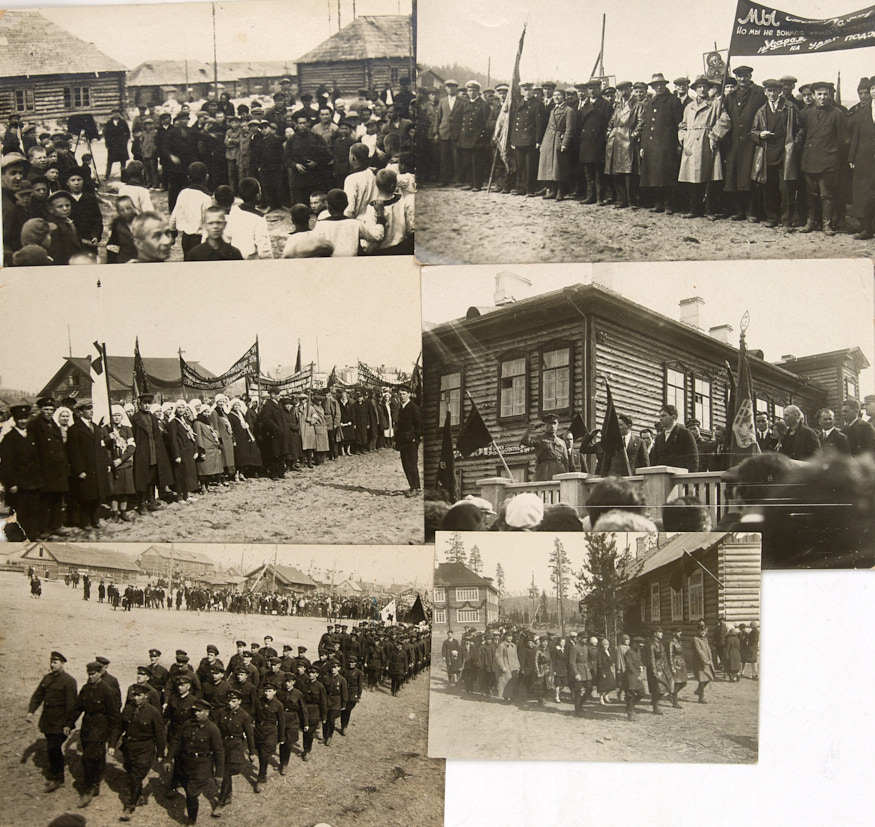 Лот из пяти фотографий. Беломоро-Балтийский канал. Лагерь ОГПУ. День солидарности трудящихся 1 мая 1933 г. Фотографии, 11,2×16; 8×11,5 см.