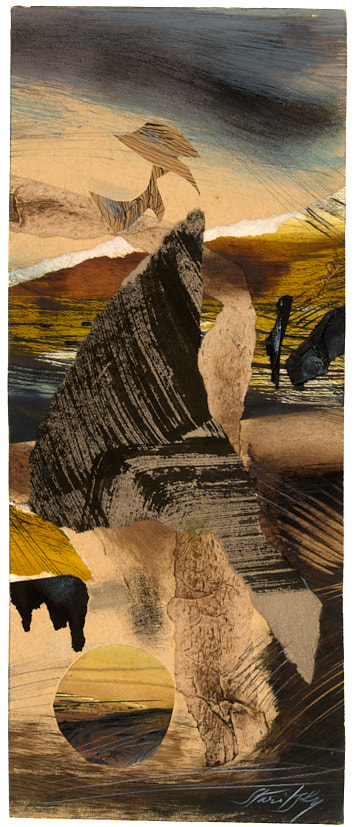 У моря. Из серии «Славянская мифология». 1970-е гг. Картон, коллаж, акварель, тушь, перо, 41,5×16,7 см.