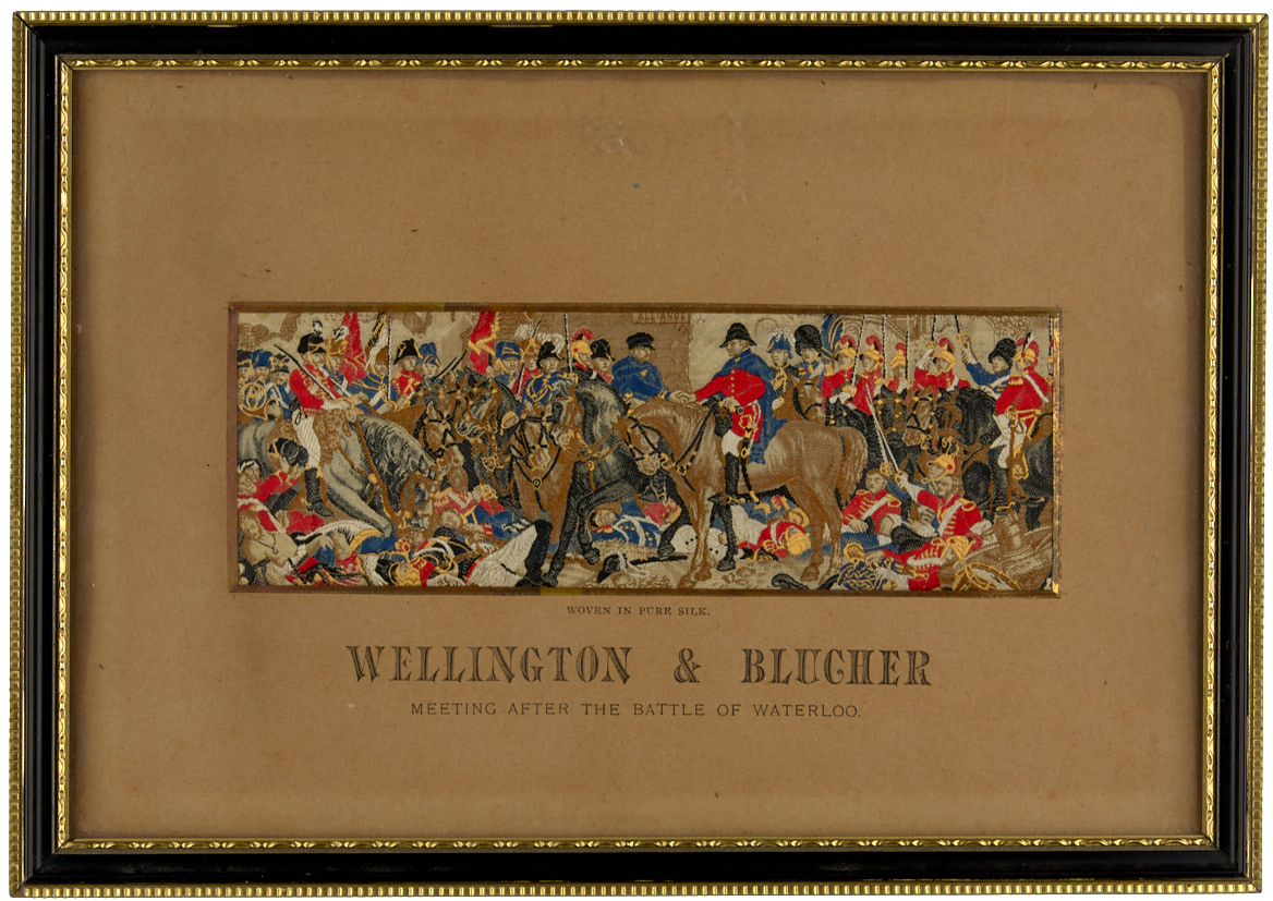Встреча маршалов Велингтона и Блюхера после битвы под Ватерлоо. 1890-е гг. Вышивка по шелку, 6,5×18 см. (в свету.)