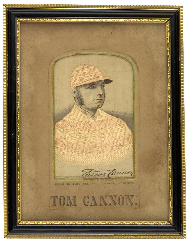 Викторианский тканый шелковый стивенграф. Портрет чемпиона- жокея Тома Кэннонана первенство Англии по конной выездке. 1890-е гг. Вышивка по шелку, 9,3×5,5 см. (в свету.)