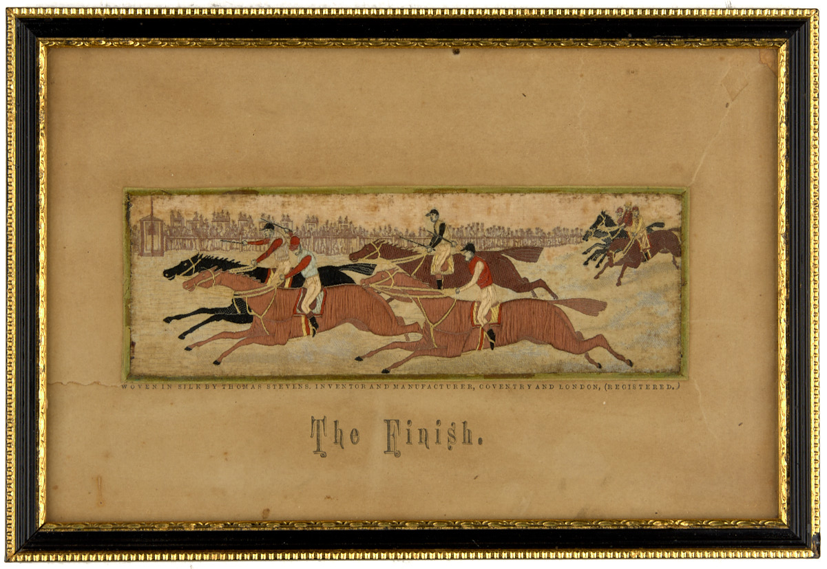 Викторианский тканый шелковый стивенграф. Финиш. 1890-е гг. Вышивка по шелку, 5,5×15,3 см. (в свету.)