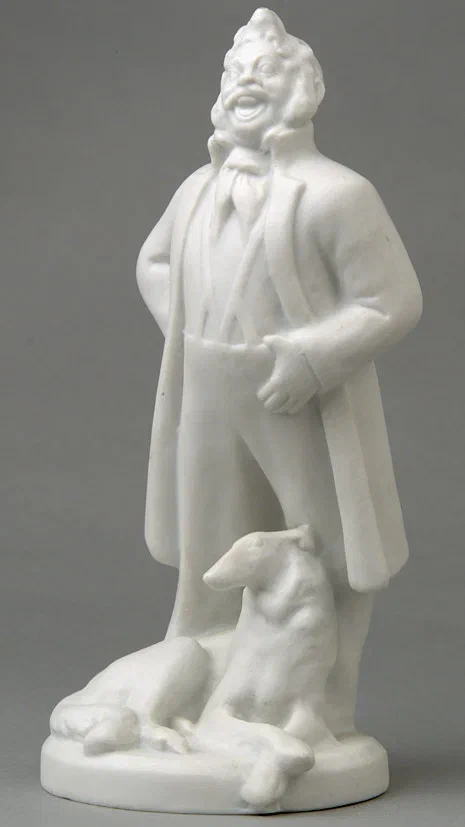 Ноздрев. Автор модели Б.Я. Воробьёв. СССР, ЛФЗ, 1950-е гг. Из серии скульптур к роману Н. В. Гоголя «Мертвые души». Фарфор, бисквит, 15,5×7 см.