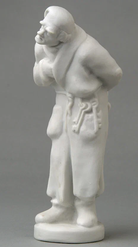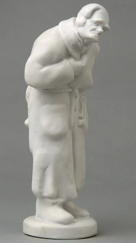 Плюшкин. Автор модели Б.Я. Воробьёв. СССР, ЛФЗ, 1950-е гг. Из серии скульптур к роману Н. В. Гоголя «Мертвые души». Фарфор, бисквит, 31,5×4,5 см.