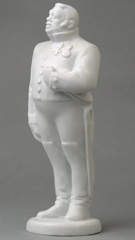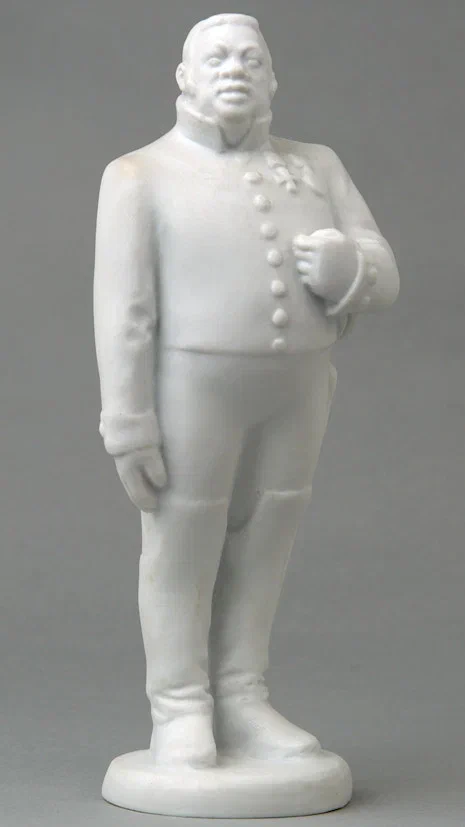 Городничий. Автор модели Б.Я. Воробьёв. СССР, ЛФЗ, 1950-е гг. Из серии скульптур к роману Н. В. Гоголя «Мертвые души». Фарфор, бисквит, 16×4,5 см.