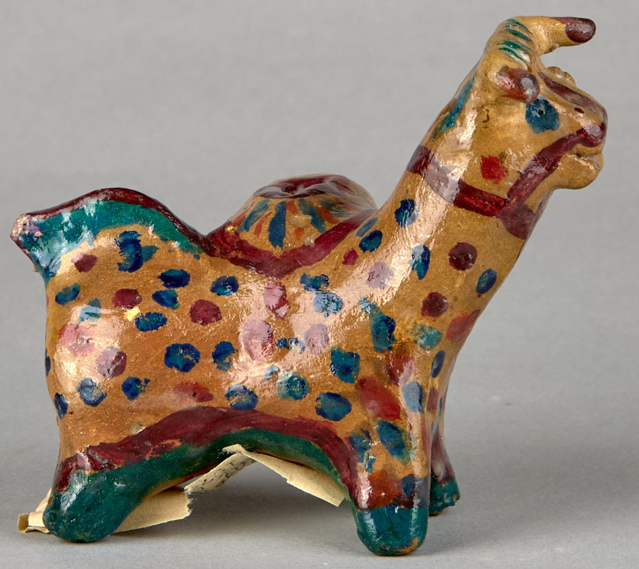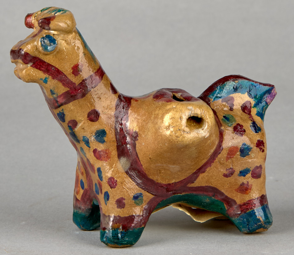 Свистулька- баран. Узбекская ССР. Гиждуван, Бухарской обл. 1986 г. Глина, лепка, роспись подглазурная, 8×11,5 см.