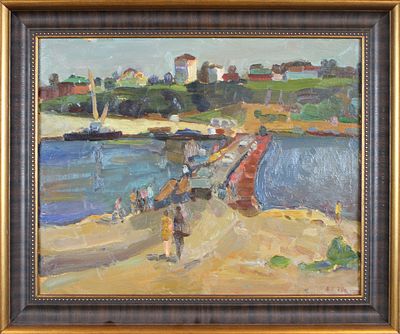 Павлово. Мост через Оку. 1979 г. Картон, масло, 40×50 см.