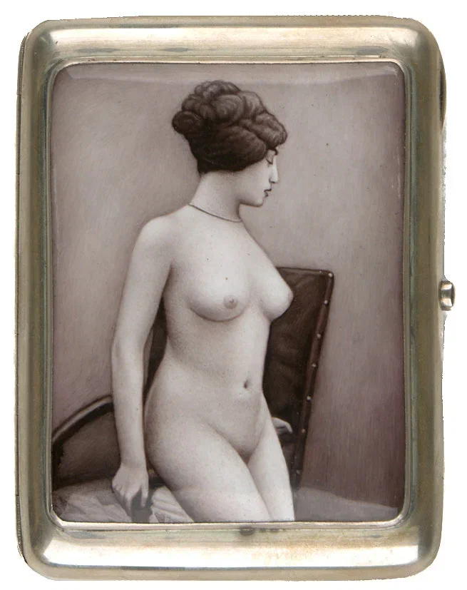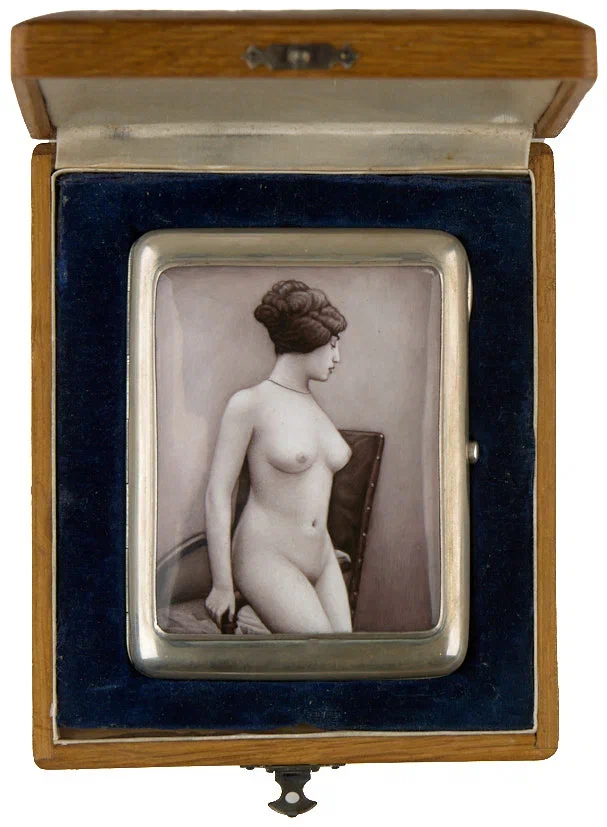 Портсигар. Москва. До 1897 г. Белый металл, расписная эмаль, 10*8 см.