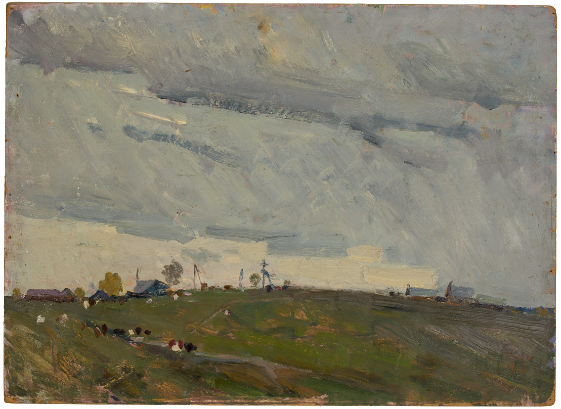 Северная деревня. 1970-е гг. Картон, масло, 50×68 см.