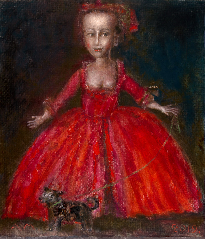 Дама с собачкой. 2019 г. Холст, масло, 45,2×40 см.